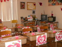 The museum is in two adjoining former classrooms, decorated as a home, with one room featuring a classroom similar to those of the rental unit schools, Forest Boulevard School and Juniper School, which were set up by the developers before the actual schools were built and then used for extra classroom space.