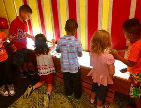 * "D.O.T., the Dragon of Toys", a three-dimensional thirty foot long sculpture of a whimsical dragon made of recycled toys which hovers above the main floor to greet visitors as they enter the Museum